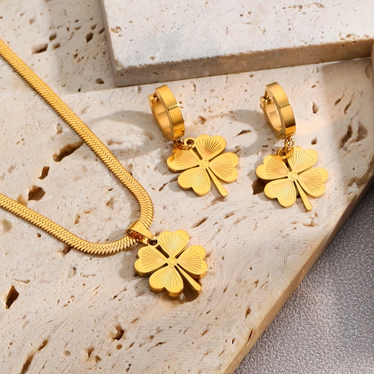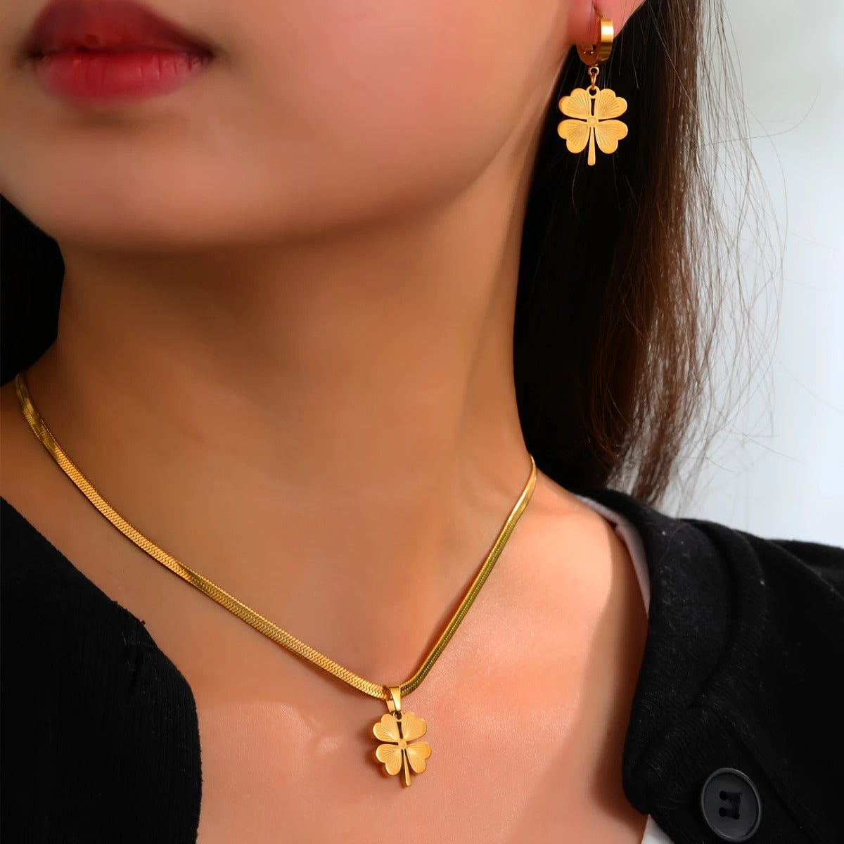 Set Colier Snake+Cercei Trifoi Auriu Femei