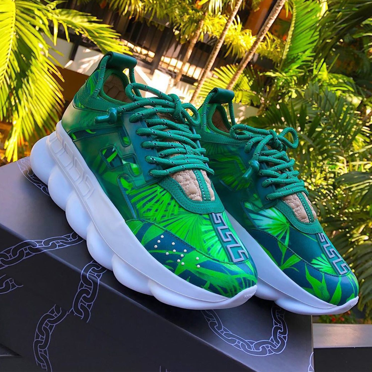 Pantofi Sport Versace Chain Reaction Concepts JLO 2000 Jungle Tropical Green-Emerald