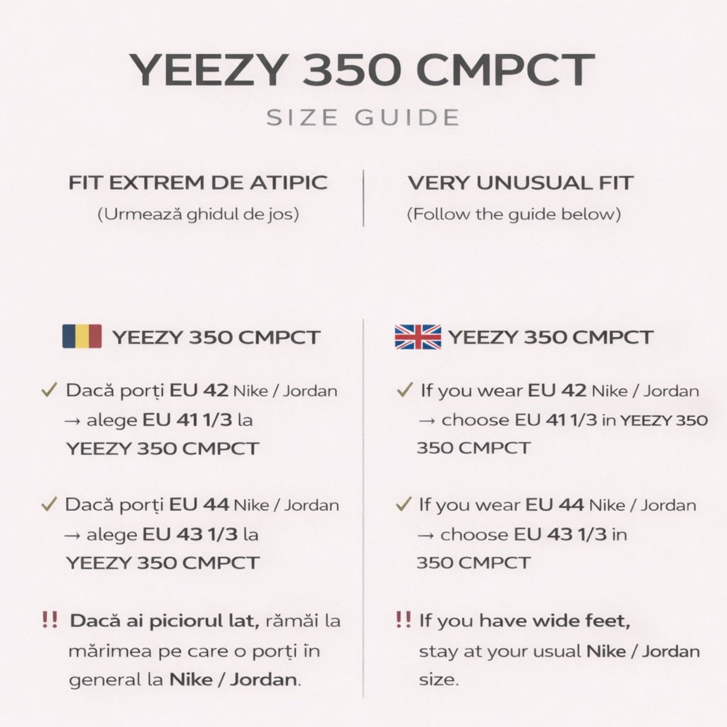 Modelul acest de Yeezy are un fit diferit față de celelalte!