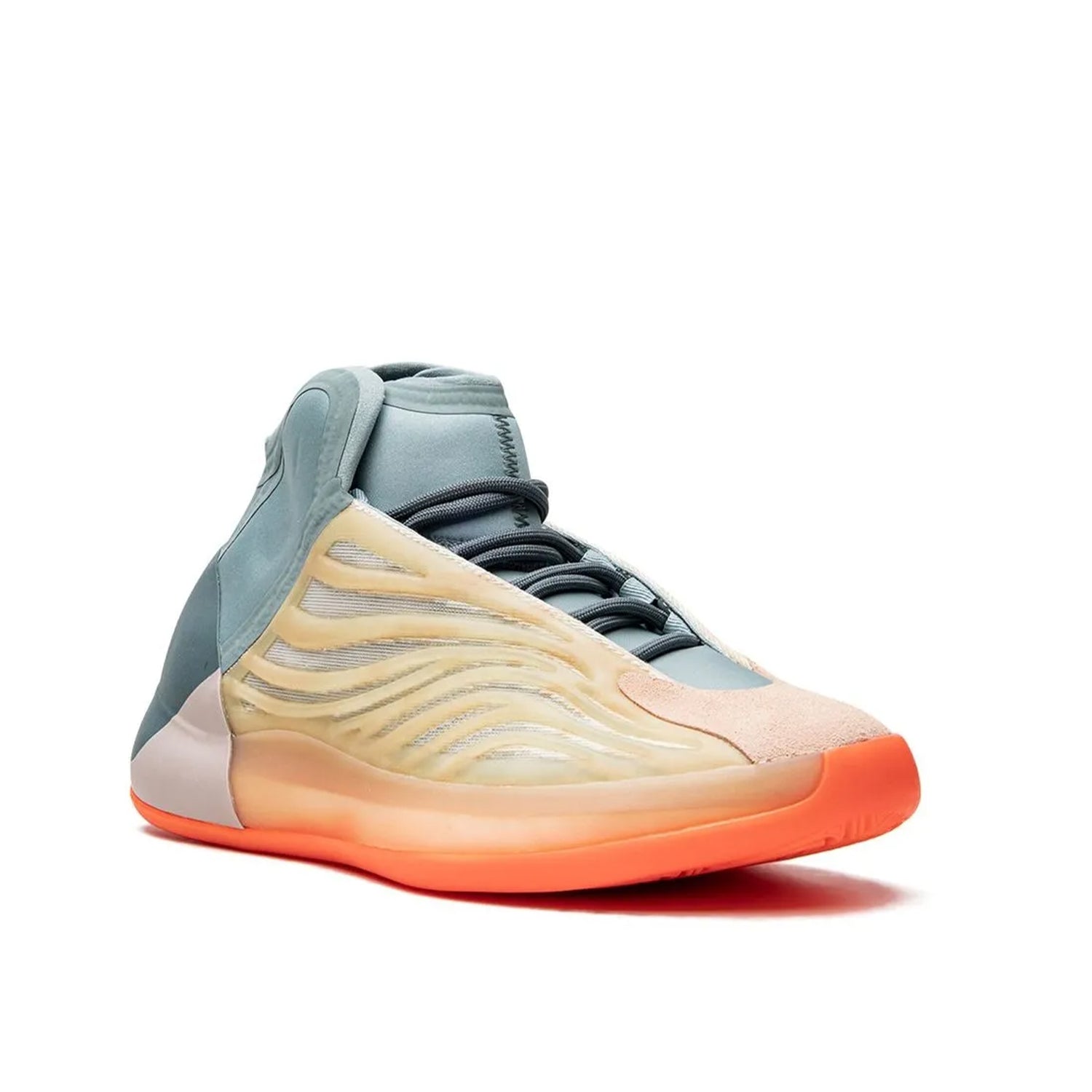 Yeezy Boost Quantum Hi Res Coral reprezintă o combinație între stilul modern și funcționalitatea avansată. Partea superioară este realizată dintr-un material Primeknit marbrat în nuanțe de crem-orange, completat de suprapuneri sintetice ondulate în tonuri de bej care contrastează cu partea superioară semi-translucidă din plasă. Talpa intermediară Boost pe întreaga lungime oferă o amortizare excelentă, iar talpa exterioară din cauciuc cu model de tracțiune asigură aderență pe diverse suprafețe. Designul modern și combinația de culori placute fac din acest model o alegere versatilă pentru diverse ținute casual și streetwear.